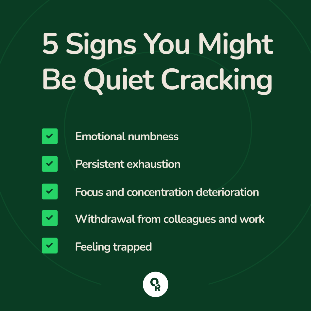Recognising quiet cracking in yourself can be challenging because the symptoms develop gradually and often get dismissed as everyday workplace stress. However, paying attention to these warning signs can help you intervene before the situation worsens.